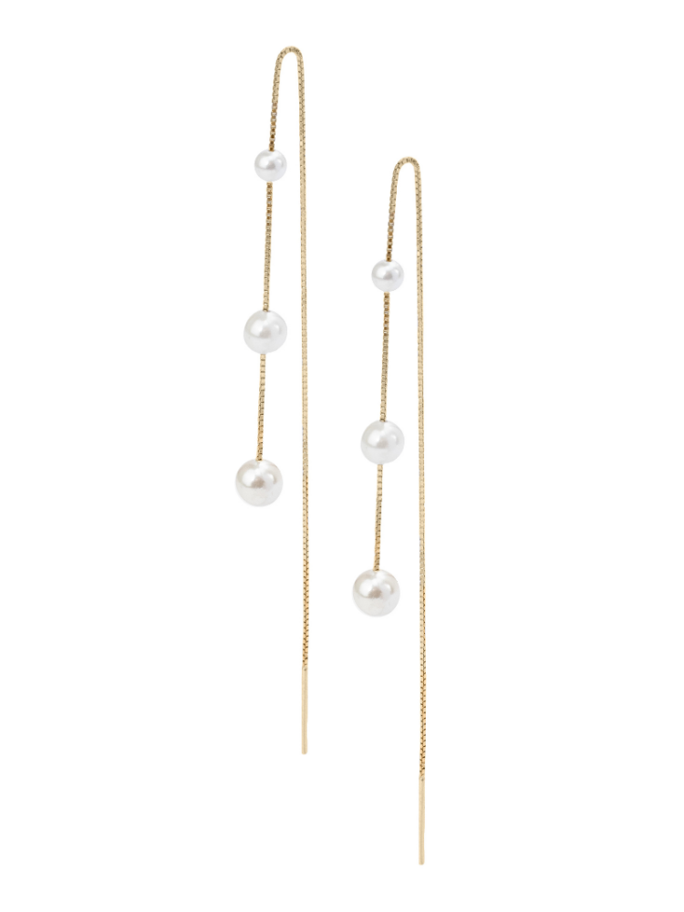 Kolczyki Maren to nowoczesne kolczyki ślubne z trzema pięknymi perłami na srebrnym łańcuszku próby 925 z 14-karatowym złotem. Dzięki konstrukcji nawlekaczy, kolczyki mogą być noszone przez wiele kolczyków, tworząc niepowtarzalny wygląd.