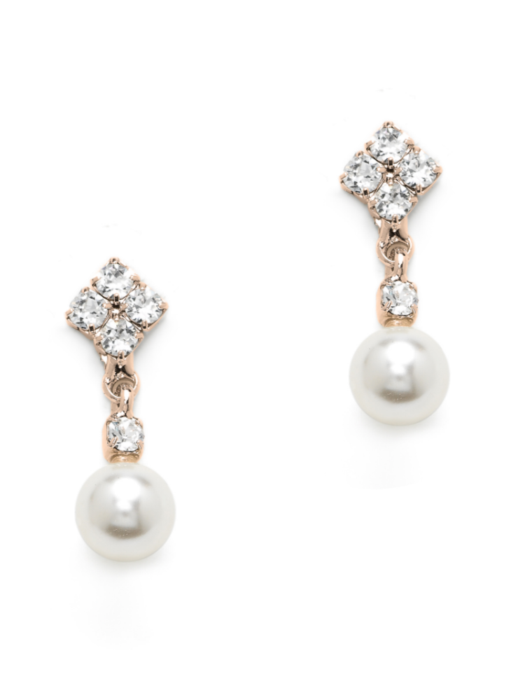 Kolczyki Romy to piękne kolczyki ślubne wykonane z pereł i delikatnych kryształów w oprawie ze srebra próby 925 pokrytego różowym złotem.