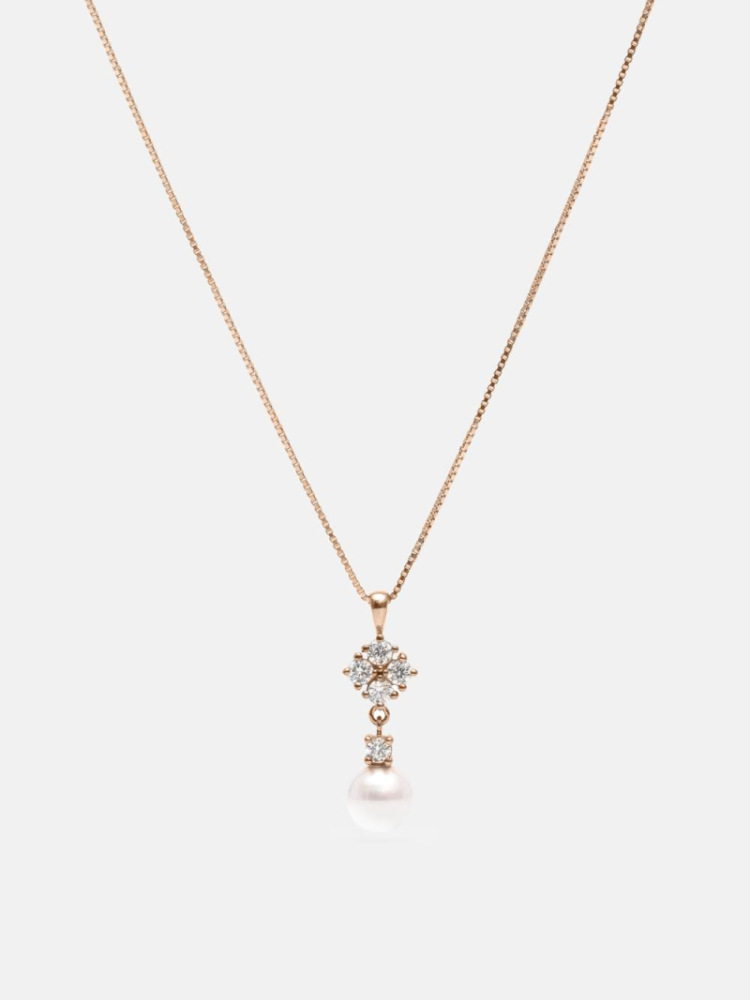 Naszyjnik Romy w kolorze różowego złota ma ciepły i romantyczny wygląd, z delikatnymi kryształkami i małą perełką, która ładnie się porusza. Jasnoróżowy odcień daje lekki, marzycielski efekt i pasuje do jasnych kolorów oraz koronkowych sukienek. Piękny wybór dla romantycznej panny młodej.