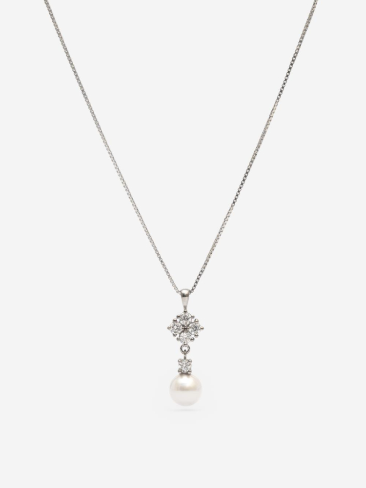 Srebrny naszyjnik Romy ma kryształki i małą perełkę, które dodają świeżego i eleganckiego wyglądu. Prosty i ponadczasowy wzór pasuje do wielu stylów ślubnych, od nowoczesnych po klasyczne. Naszyjnik jest lekki i wygodny do noszenia przez cały dzień.
