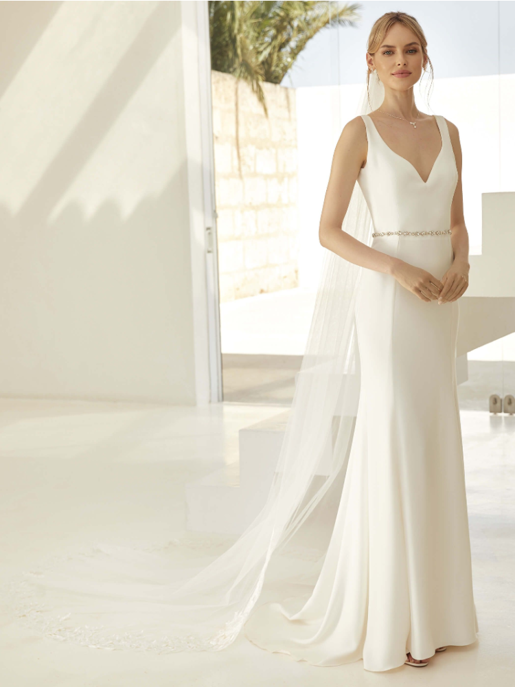 Ten elegancki welon od Bianco Evento dopełni Twój ślubny look. Ten jednowarstwowy welon jest wykonany z tiulu daimon i ma koronkową krawędź u dołu i ciętą krawędź u góry. Do welonu dołączony jest grzebień, który ułatwia wsuwanie welonu we włosy.