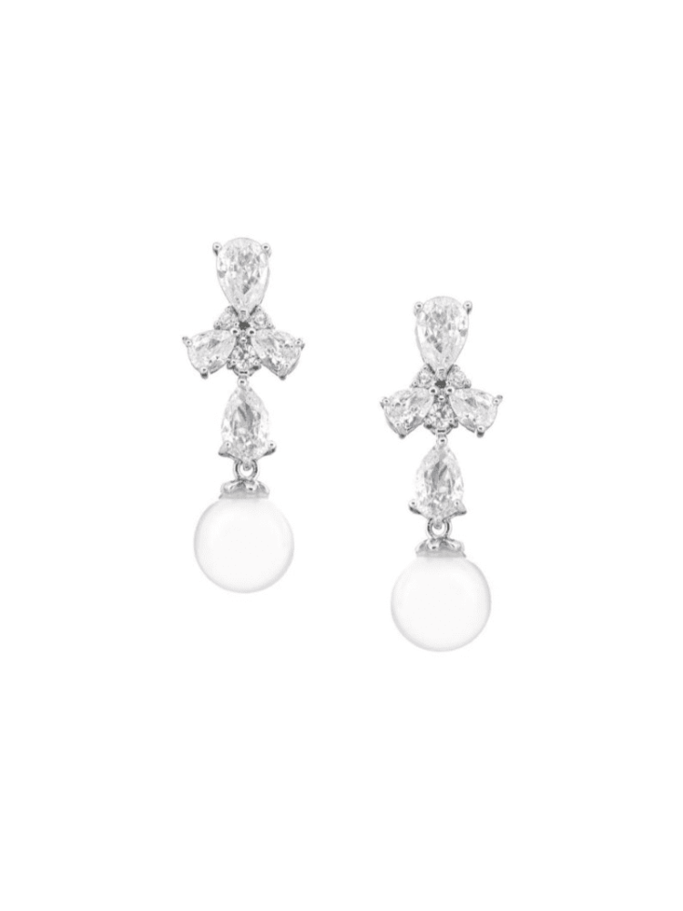 Te piękne srebrne kolczyki składają się z oszałamiającego układu błyszczących kamieni sześciennych cyrkonii. Koraliki w kolorze kości słoniowej sprawiają, że kolczyki są bardzo nowoczesne i szykowne. Będą wyglądać fantastycznie w połączeniu z suknią ślubną. Rodowane kolczyki będą błyszczeć w tym wyjątkowym dniu i dodadzą wykończenia do stroju ślubnego. Kolczyki mają długość 4,8 cm.