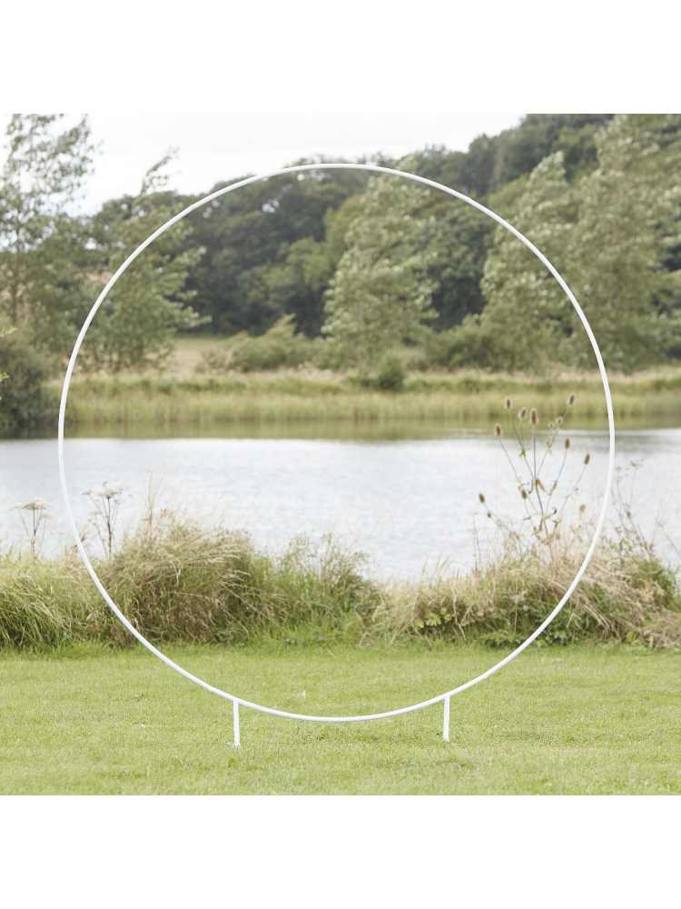 Ten biały okrągły łuk ślubny jest idealnym tłem dla ceremonii lub jako dekoracyjne tło ślubne.