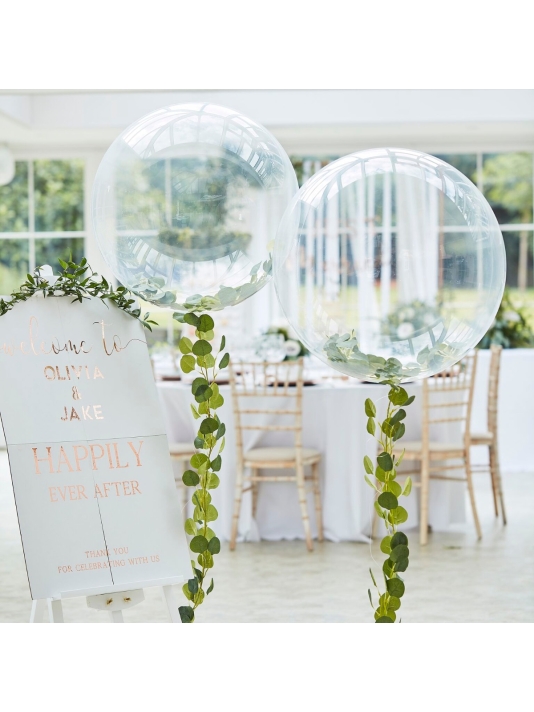 Stwórz botaniczny wygląd na swoim weselu z tym balonem Orbz z girlandą z liści. Balon jest nawet częściowo wypełniony liśćmi dla dodatkowego efektu botanicznego!