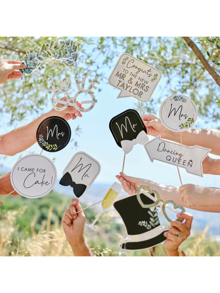 Ekologiczne i stylowe rekwizyty do fotobudki są idealnymi rekwizytami, aby zaangażować wszystkich gości w tworzenie wyjątkowych wspomnień z dnia ślubu.
