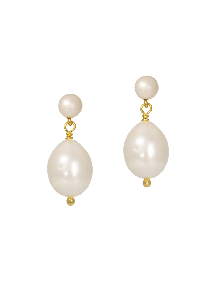 A stunning design for pearl enthusiasts: these earrings feature small round freshwater pearl studs paired with larger oval freshwater pearl pendants.