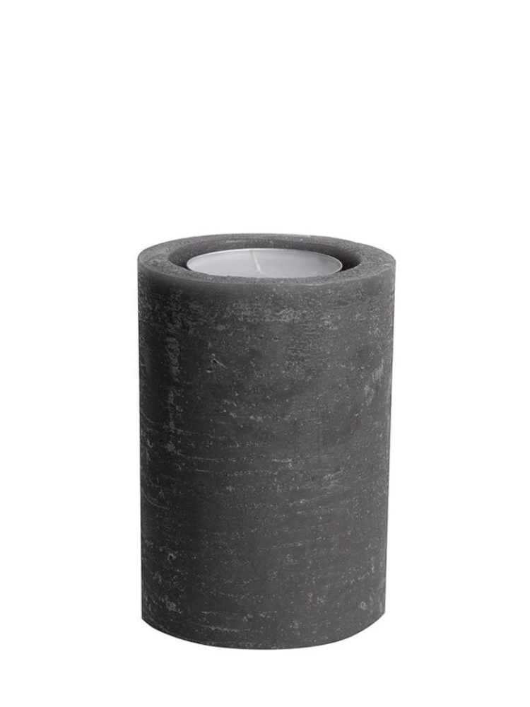 Odlew z wosku w łagodnej szarości, Ø10 x 14 cm, mieści dużą świeczkę typu tealight, utrzymując płomień na środku; złudzenie słupa dodaje intymnego ciepła i sprawia, że każdy stół wygląda starannie i z klasą.