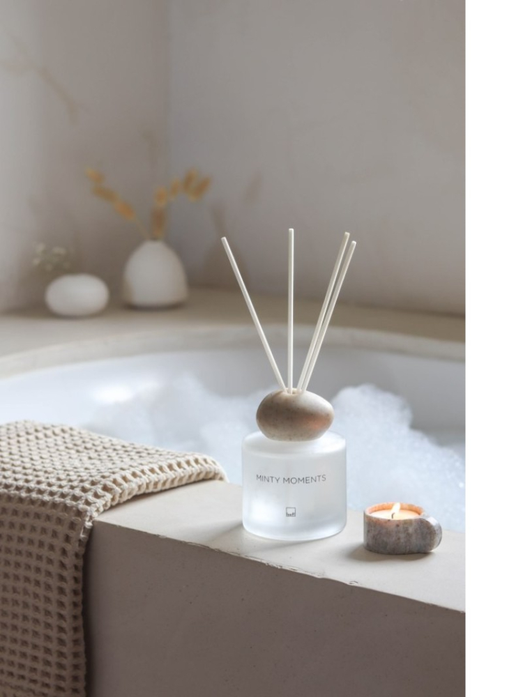 Delikatna kompozycja Miętowe Chwile wnosi do domu oddech świeżości i spokoju, idealna jako elegancki prezent. To zapach, który zaprasza do celebracji codziennych momentów.