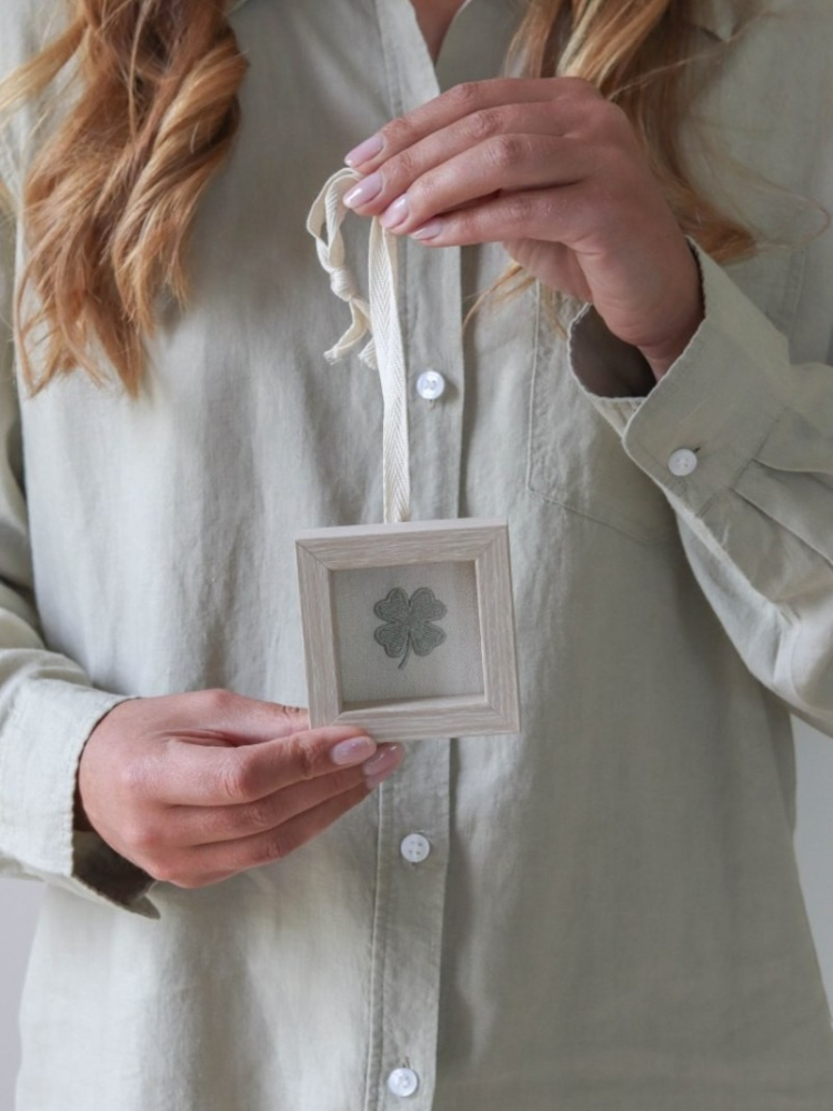 Subtelna mini ramka na zdjęcie od Leeff zachwyca lnianą tkaniną z wyhaftowaną czterolistną koniczyną. Format 5 x 5 cm pięknie dopełnia wystrój, a miękki woreczek upominkowy dodaje uroku. Delikatny akcent, który niesie myśl o szczęściu i wyjątkowych chwilach.