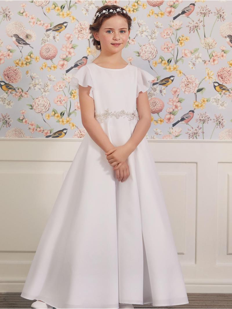 This communion/bridemaids dress from LILLY is simple and cute. The dress has cute short sleeves and beautiful pearl details in the middle, in the shape of little leaves.