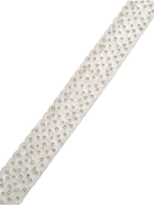 Pasek Poirier B-75080 w odcieniu kości słoniowej dodaje błyszczącego wykończenia do Twojej ślubnej stylizacji. Ozdobiony lśniącymi kryształkami, ten modny dodatek podkreśla talię i suknię ślubną, wprowadzając wysublimowany glamour. Idealny do sukni lub kombinezonów, łączy elegancję z stylem.