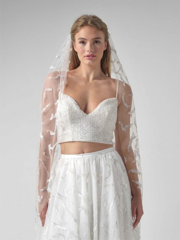Zdobienia: Srebrne cekinowe fale na całym welonie