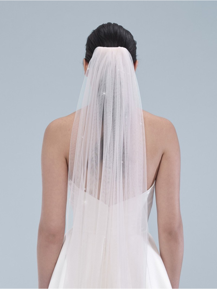 This veil is 120 cm long, made of single-layer soft veil and is decorated with crystals.