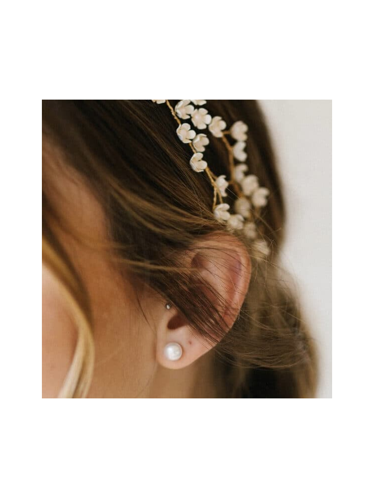 Ponadczasowe i wszechstronne, kolczyki z masy perłowej od Sally Jane Bridal to klasyczne perełki osadzone w eleganckim, pozłacanym mosiądzu. Niezbędne dla panien młodych ceniących subtelną elegancję — dodają delikatnego blasku, który ze smakiem dopełnia każdą ślubną stylizację.